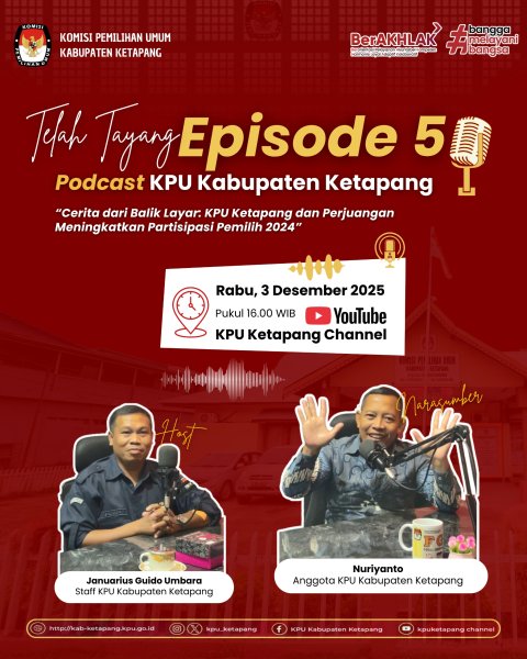 Ketapang, kpu-ketapangkab.go.id – KPU Kabupaten Ketapang merilis Episode 5 Podcast KPU Ketapang Channel yang mengulas cerita menarik di balik upaya meningkatkan partisipasi pemilih pada Pemilu 2024, Selasa (3/12/2025) sore WIB. Dalam episode ini, Ketua Divisi Sosialisasi, Pendidikan Pemilih, Partisipasi Masyarakat, dan SDM KPU Ketapang, Nuriyanto memaparkan berbagai tantangan teknis di lapangan, strategi sosialisasi, hingga kerja-kerja sunyi yang selama ini tidak terlihat oleh publik. Podcast dipandu oleh Januarius Guido Umbara, staf KPU Kabupaten Ketapang yang juga menjadi host tetap dalam program podcast tersebut. Melalui podcast ini, KPU Ketapang berharap masyarakat dapat memahami lebih dekat proses dan komitmen lembaga dalam memastikan terselenggaranya Pemilu yang partisipatif dan berintegritas. Episode ini juga menjadi sarana bagi KPU untuk menjelaskan langsung kepada publik berbagai upaya yang telah dilakukan sepanjang tahapan Pemilu. Tidak hanya membahas tantangan, podcast ini juga menyoroti pentingnya kolaborasi dengan berbagai pihak, mulai dari lembaga pendidikan, komunitas lokal, hingga pemilih pemula. Sinergi tersebut menjadi salah satu kunci keberhasilan dalam memperluas jangkauan sosialisasi serta mendorong kesadaran masyarakat akan pentingnya menggunakan hak pilih. Melalui tayangan digital seperti podcast, KPU Ketapang terus berinovasi dalam menyampaikan informasi kepemiluan yang lebih mudah diakses dan menarik bagi masyarakat. Episode 5 ini tayang perdana pada Selasa, 3 Desember 2025 melalui YouTube KPU Ketapang Channel. ....