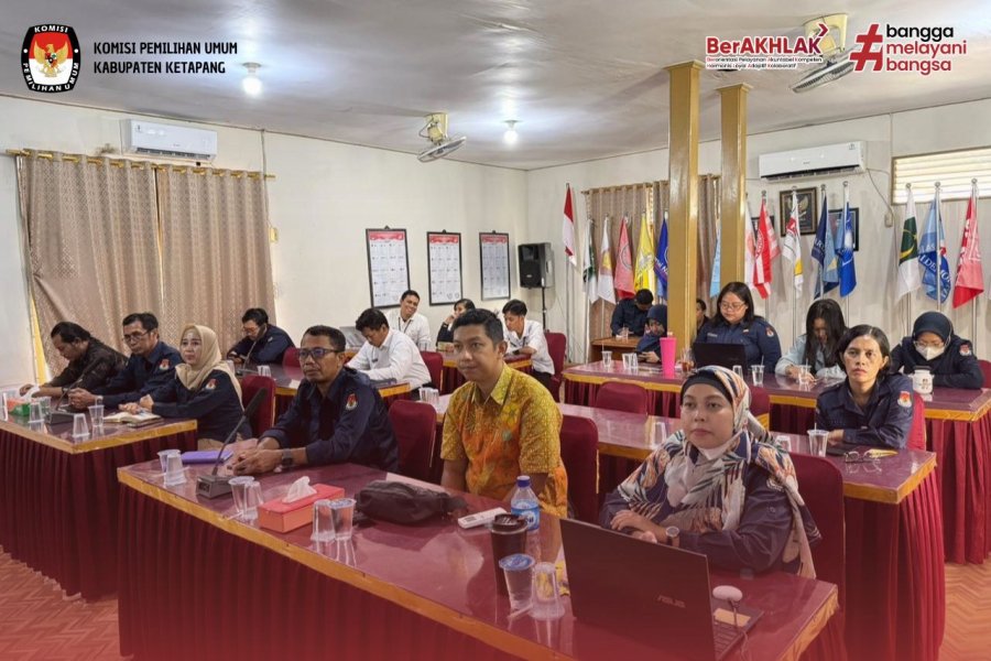 Ketapang, kpu-ketapangkab.go.id – Komisi Pemilihan Umum (KPU) Kabupaten Ketapang menggelar rapat internal yang dipimpin langsung oleh Ketua KPU Ketapang, Ahmad Shiddiq, pada Senin (13/10/2025) di ruang rapat kantor KPU Kabupaten Ketapang. Rapat dimulai pukul 09.00 WIB dan dihadiri oleh Jajaran Anggota Komisioner, Plt. Sekretaris Endo Wahyudi dan Kasubbag di Sekretariat. Agenda utama rapat kali ini mencakup reviu hasil rapat rutin sebelumnya, serta tindak lanjut pembahasan rencana kerja Pemutakhiran Data Pemilih Berkelanjutan (PDPB) Triwulan IV Tahun 2025. Selain itu, turut dibahas rencana pelaksanaan program Podcast KPU Ketapang sebagai bagian dari upaya sosialisasi dan edukasi kepemiluan kepada masyarakat. Dalam kesempatan tersebut, jajaran juga membahas tindak lanjut surat dari Bawaslu Kabupaten Ketapang terkait perbaikan data PDPB, yang menjadi salah satu fokus penting guna menjaga akurasi dan validitas data pemilih. Rapat diakhiri dengan pembahasan hal-hal lain yang dianggap penting, terutama mengenai koordinasi dan pembagian tugas ke depan, guna memastikan setiap program dan kegiatan KPU Ketapang berjalan sesuai rencana dan tetap selaras dengan semangat profesionalisme dan transparansi pelayanan publik.
