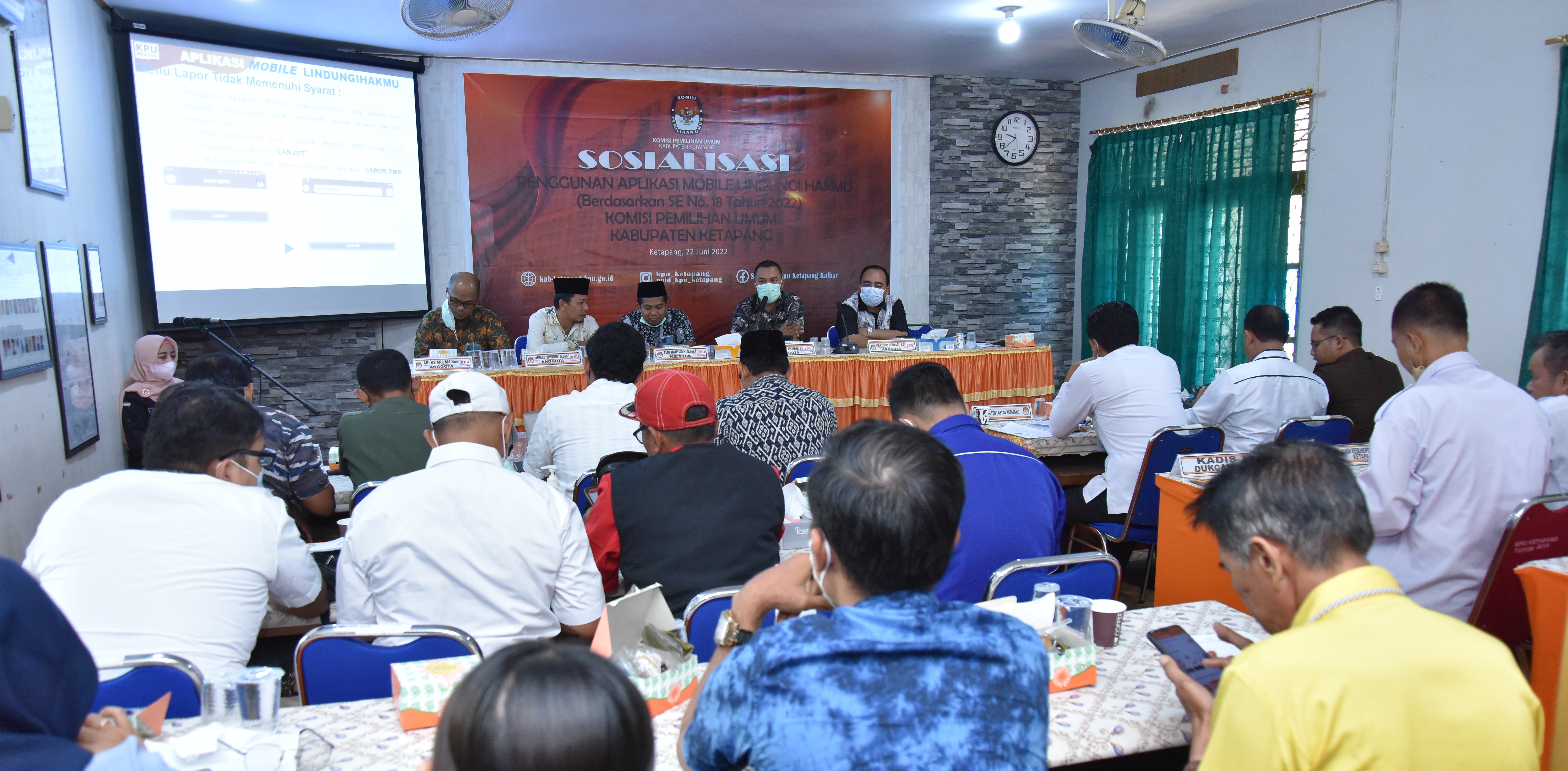 Rabu (22/6) bertempat di aula Rumah Pintar Pemilu “Pawan Bertuah”, Komisi Pemilihan Umum Kabupaten Ketapang secara masif sosialisasikan aplikasi mobile “LindungiHakmu”. Kegiatan sosialisasi dihadiri oleh seluruh Forkopimda, Bawaslu Ketapang, dinas dan instansi terkait, serta pimpinan partai politik se-Kabupaten Ketapang. Salah satu elemen penting pelaksanaan tahapan Pemilu dan Pemilihan Kepala Daerah adalah daftar pemilih. Daftar pemilih yang akurat dan akuntabel akan bermuara pada peningkatan kualitas Pemilu dan Pemilihan. Dalam setiap pelaksanaan pesta demokrasi, seringkali daftar pemilih menjadi persoalan klasik bagi peserta pemilu maupun bagi pemilih itu sendiri. Hal ini tentunya menjadi masukan bagi KPU dalam proses pemutakhiran. Guna menjawab tantangan tersebut, Komisi Pemilihan Umum melaksanakan tahapan Pemutakhiran Data Pemilih Berkelanjutan (PDPB). Tahapan PDPB dilakukan secara kontinyu setiap bulannya. Pemanfaatan teknologi informasi dalam pemutakhiran data pemilih menjadi perhatian dan hal krusial yang harus dilakukan oleh KPU. Dengan menciptakan dan mengembangkan aplikasi mobile LindungiHakmu, maka aspek keterbukaan informasi publik sudah dilaksanakan. Aplikasi ini dapat diakses oleh semua kalangan masyarakat melalui playstore. Komisi Pemilihan Umum Kabupaten Ketapang mengajak seluruh komponen masyarakat berperan aktif dalam pemutakhiran data pemilih demi terwujudnya pemilih yang berintegritas. Surat Edaran KPU Republik Indonesia Nomor 18 Tahun 2022 menjadi standar teknis dalam pengoperasian aplikasi mobile ini. KPU memandang aplikasi ini sangat penting dalam menunjang pelaksanaan proses pemutakhiran data pemilih sehingga dapat menghasilkan data pemilih yang akurat, akuntabel, efisiensi, efektifitas, transparan serta mewujudkan data pemilih yang komprehensif, akurat, dan mutakhir. Kegiatan sosialisasi yang dilaksanakan KPU Kabupaten Ketapang tentu memiliki harapan besar. Anggota KPU Kabupaten Ketapang, Jami Surahman, menyampaikan bahwa aplikasi ini merupakan pembuktian awal pada tahapan Pemilu tahun 2024 bahwa KPU selalu berinovasi dan melayani. Secara tegas Jami mengimbau kepada seluruh lapisan masyarakat untuk dapat berperan aktif dalam menciptakan Pemilu dan Pemilihan yang berintegritas dengan memberikan informasi yang jelas, mulai dari diri sendiri, keluarga, lingkungan sekitar, hingga ke forum yang lebih luas. Kontributor: Jami Surahman, SE Editor: Ridho Nurwantoro, S.I.P