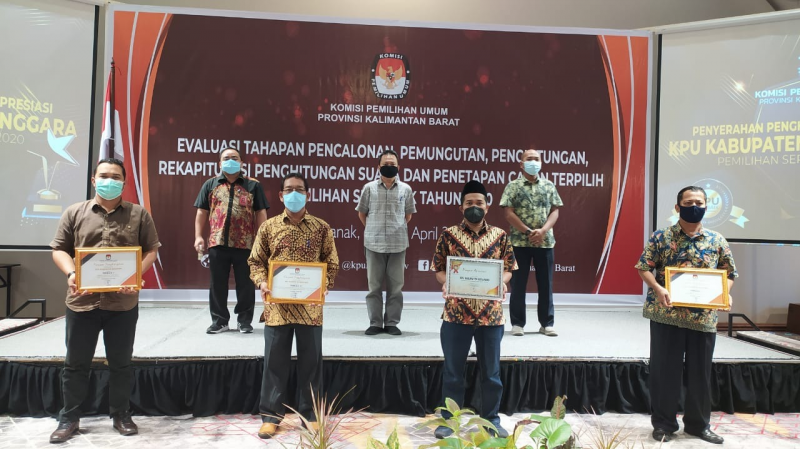 KPU Kabupaten Ketapang meraih tiga penghargaan atas kinerja yang telah dilakukan dalam Pemilihan Serentak tahun 2020, tiga penghargaan yang diraih tersebut yakni sebagai terbaik 1 kategori pengelolaan logistik, kemudian meraih terbaik 1 kategori jumlah data pemilih ganda terkecil dan meraih terbaik III untuk kategori penyusunan laporan keuangan semester II Tahun 2020. Penghargaan tersebut diberikan oleh KPU Provinsi Kal-Bar pada evaluasi tahapan pencalonan, pemungutan, penghitungan, rekapitulasi suara dan penetapan pasangan calon terpilih dalam pemilihan serentak tahun 2020 yang diikuti 7 kabupaten yang melaksanakan pemilihan yang berlangsung di hotel mercure 17-18 April 2021. Pemberian penghargaan tersebut tertuang dalam Keputusan KPU Provinsi Kalimantan Barat Nomor : 8/SDM.03.7-Kpt/61/Prov/IV/2021 tentang Pemberian Penghargaan Bagi Satuan Kerja Komisi Pemilihan Umum Kabupaten Penyelenggara Pemilihan Serentak tahun 2020.