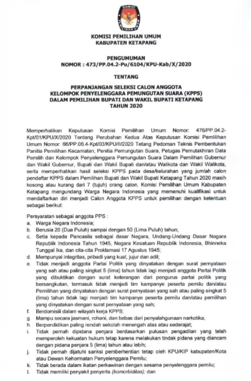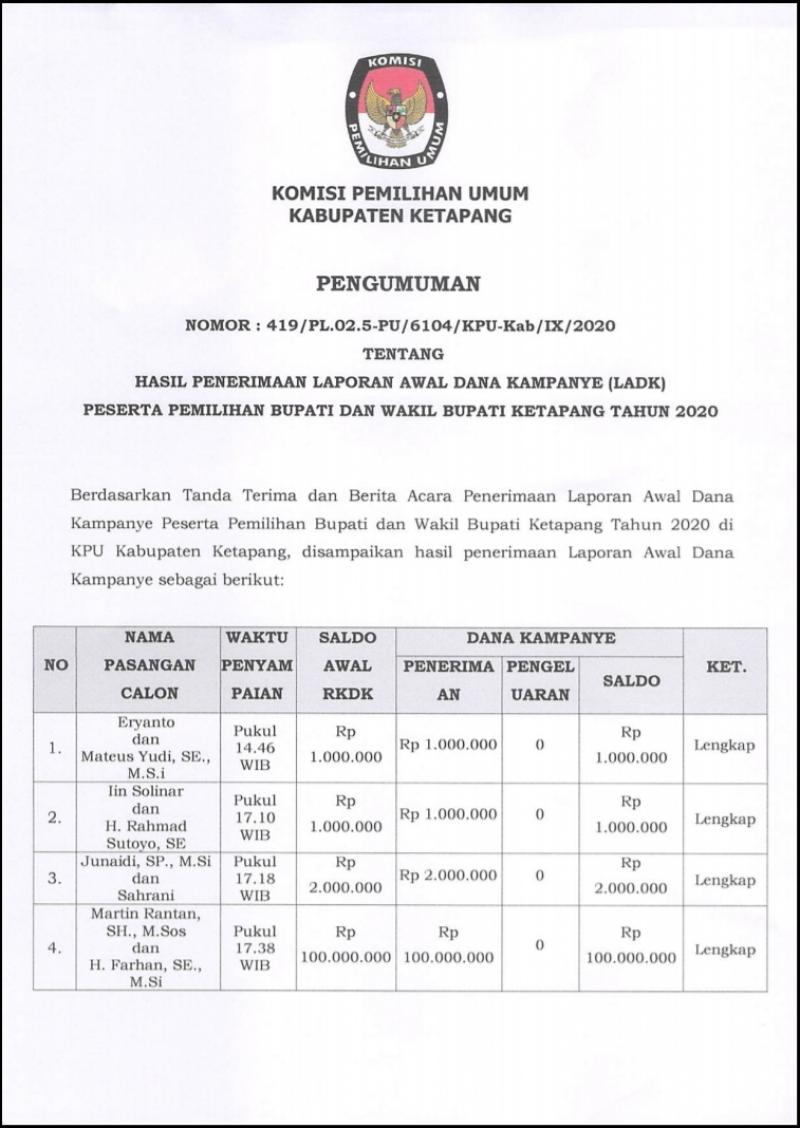 Bupati Ketapang melalui surat nomor 270/0646/KesbangPolLinmas-C tanggal 1 September 2020, telah merekomendasikan tempat-tempat yang boleh dipasangi APK atau gedung yang dapat dipergunakan untuk kegiatan kampanye dalam bentuk lain seperti : pertemuan terbatas, tatap muka ataupun dialog. Untuk kegiatan kampanye dalam bentuk lain tentu saja mesti mengacu pada Peraturan KPU Nomor 6 tahun 2020 tentang Pelaksanaan Pemilihan Gubernur dan Wakil Gubernur, Bupati dan Wakil Bupati dan/atau Walikota dan Wakil Walikota Serentak Lanjutan Dalam Kondisi Bencana Non Alam Covid-19, khususnya pada Pasal 57 hingga Pasal 64 yang mengatur tentang kampanye pemilihan yang tentunya dengan menerapkan protokol pencegahan dan pengendalian covid-19“.