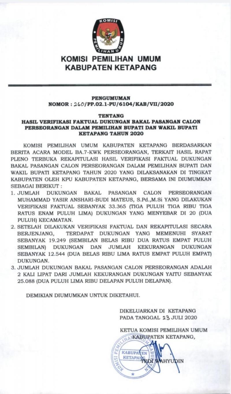 KPU Kabupaten Ketapang akan Mengumumkan Daftar Pemilih Sementara (DPS) pada 19 - 28 September 2020.