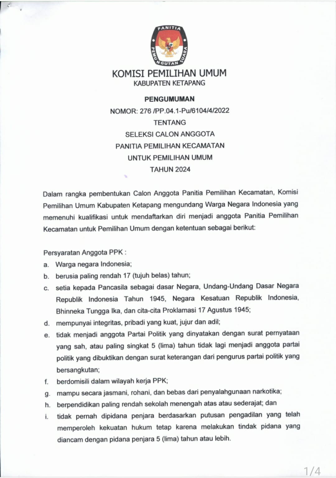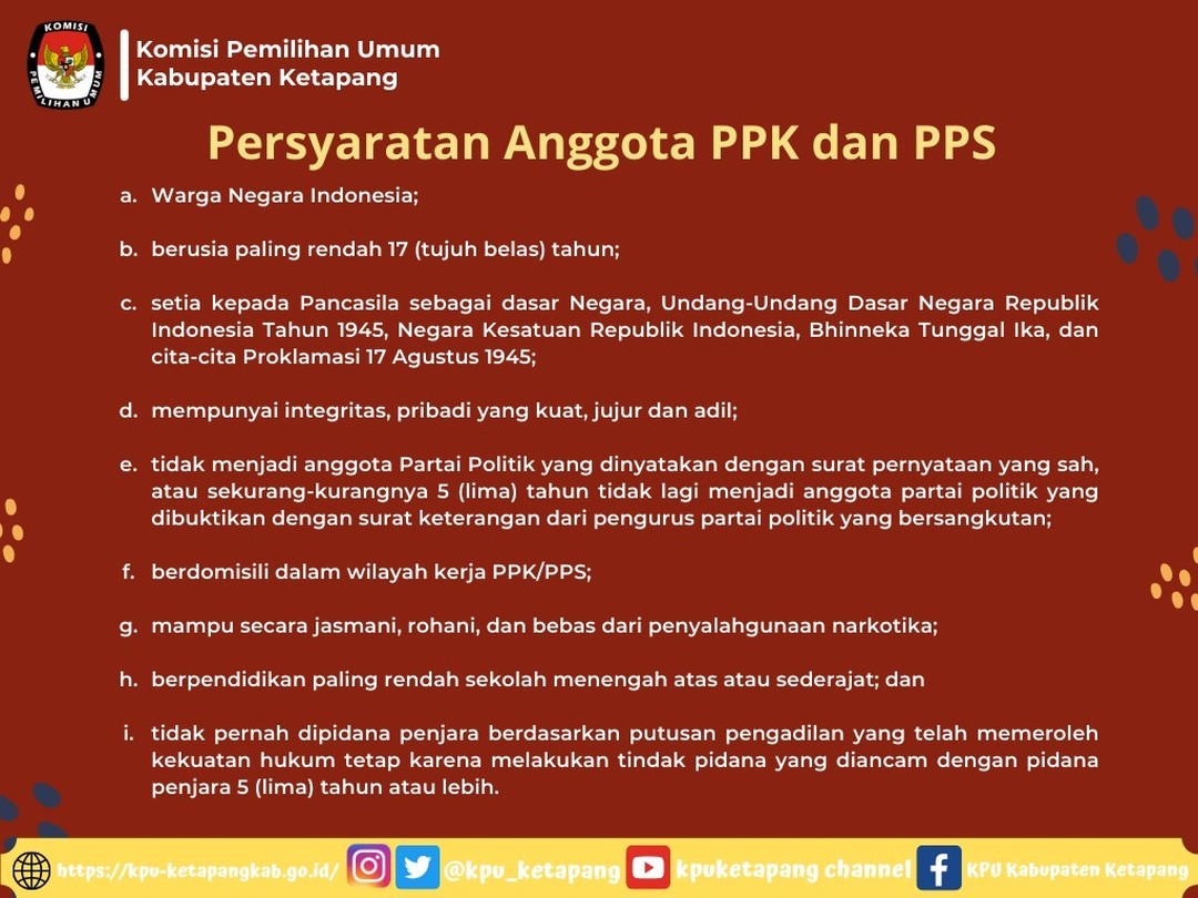 Informasi lebih lanjut dapat menghubungi Call Center KPU Kabupaten Ketapang (Dewi 081345115582 atau Ridho 08972059623).