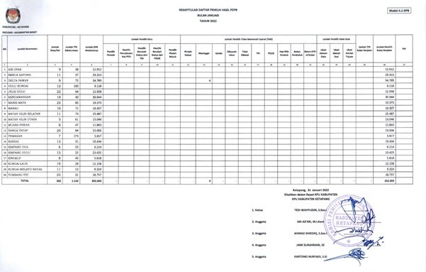 HASIL REKAPITULASI DAFTAR PEMILIH BERKELANJUTAN BULAN JANUARI TAHUN 2022 Jumat, 11 Februari 2022 00:00 91 Berikut disampaikan Data Pemilih Berkelanjutan bulan Januari 2022 yang dapat diakses melalui tautan berikut ini. LINK Baca Selengkapnya